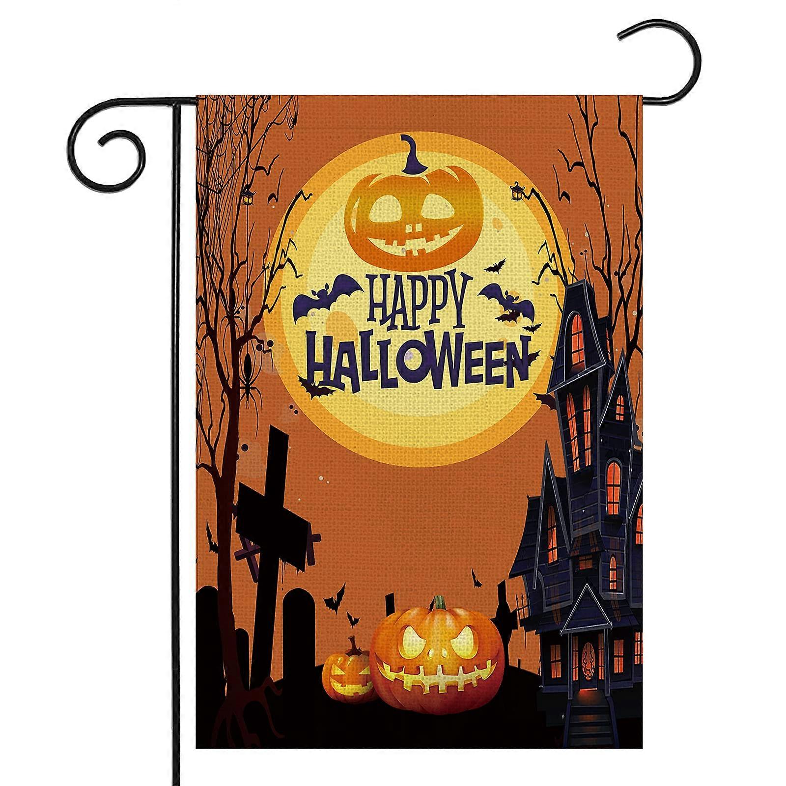 Halloween Garden Flag,Double-Sided Garden Flag Bats Pumpkin,for Outdoor Halloween Decor