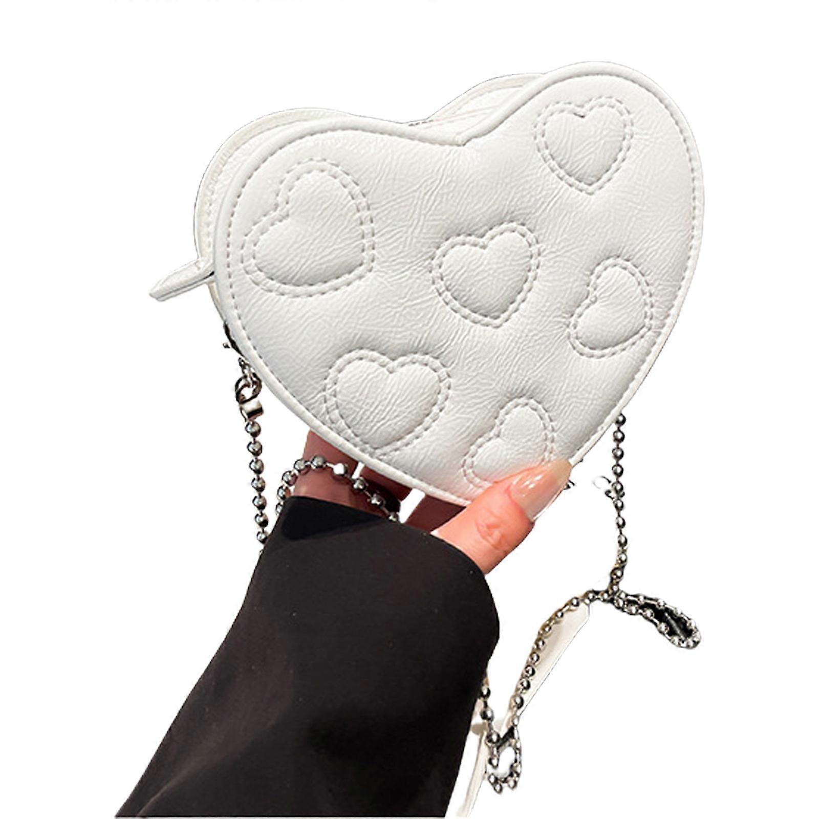 Coin Purse Wallet Shoulder Bag with Zipper Closure Heart Shape Clutch Purses Handbag Crossbody Bag for Women Girls White