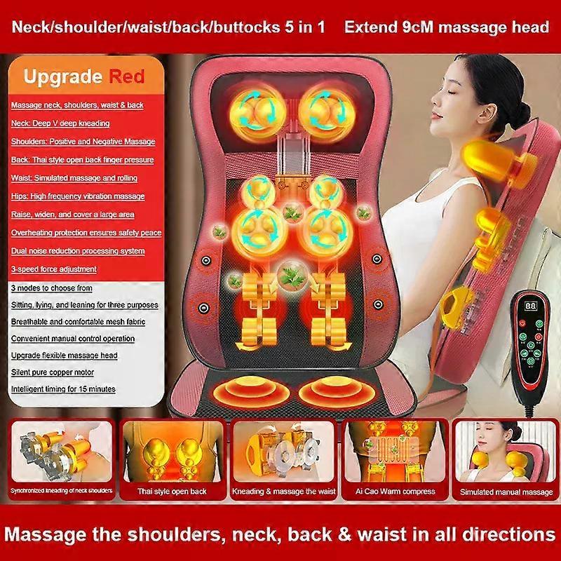 Cervical Spine Massage Pad Tool Neck Waist Full Body Vibration Shiatsu Heat Kneading Massage Chair Cushion for Home & Office Use