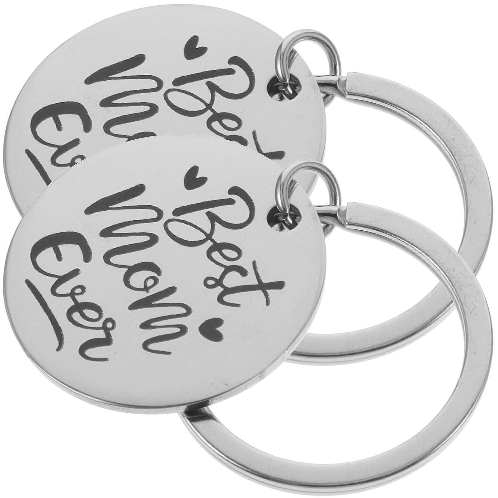 Mother Day Round Keychain Backpack Hanging Decor Silver Color 6x3cm Size Stainless Steel Pendants For Birthday 2Pcs