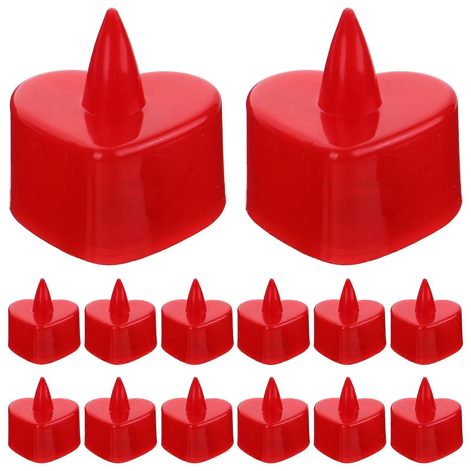 Valentine's Day Heart Fake Tealight Flameless Candles Red Shell Red Light Candle Holder Compatible 24Pcs