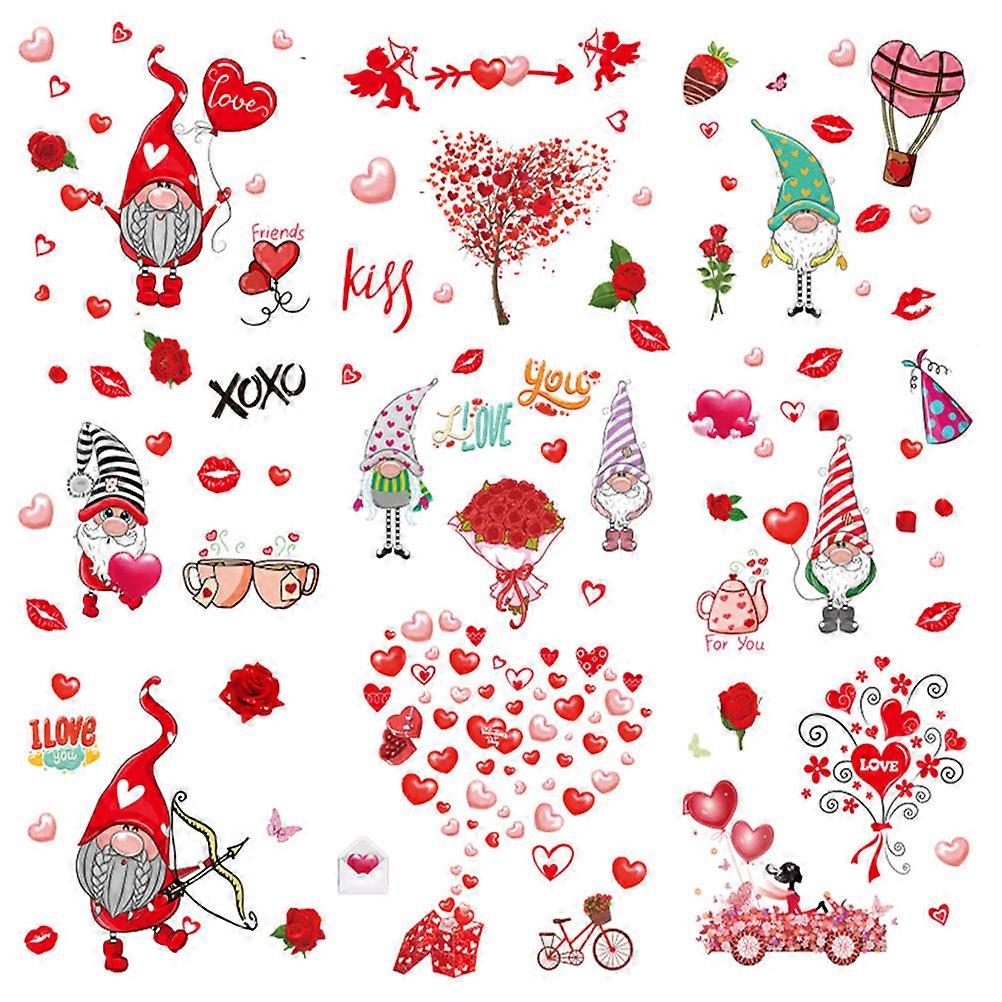Valentine Window Cling Sticker Gnome Heart Stickers Love Theme Decal Decorations Multi Colored 30x20cm Window Cling 9 Sheets