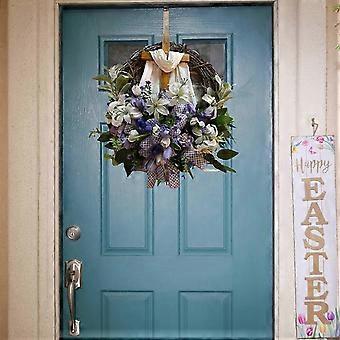 Easter Wreath Door Hanging Decoration with Cross, Bouquet Garland for Front Door Decor