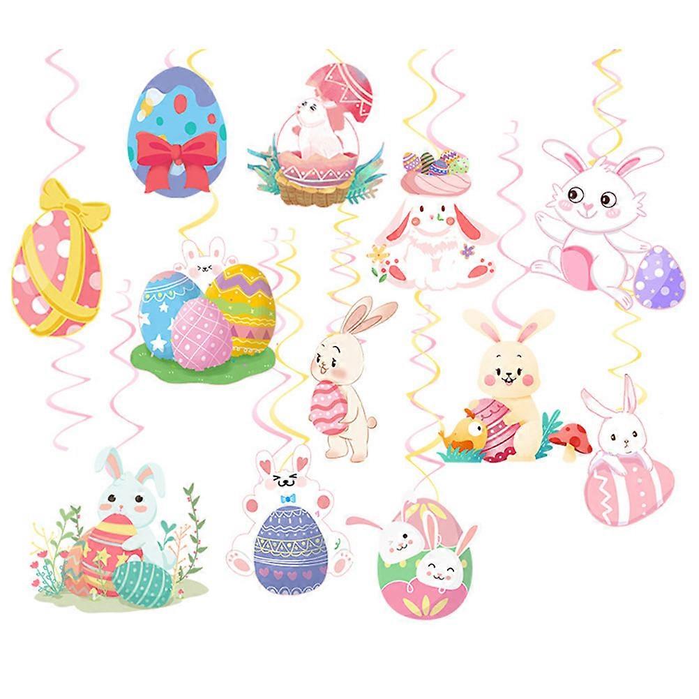 Easter Party Hanging Decors Rabbit Egg Design Spiral Pendants Assorted Color 13x12.8cm Wall Hanging Decor 1 Set