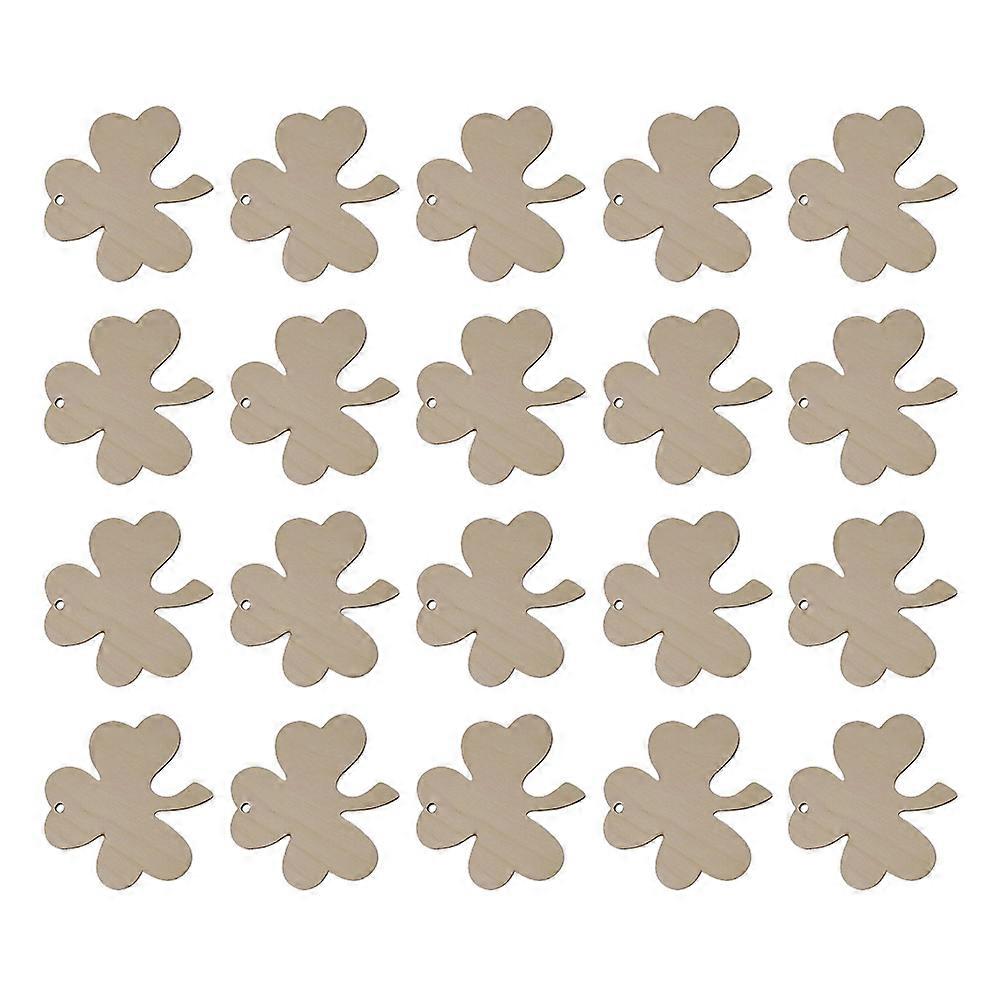 St Patricks Day Wooden Clover Ornament for Home Use 20Pcs Beige