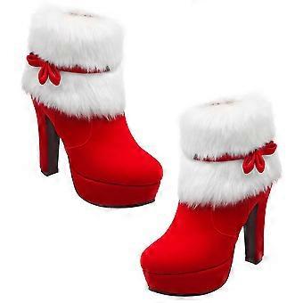 Christmas Winter High Heel Thicken Platform Plush Ankle Shoes Short Boot