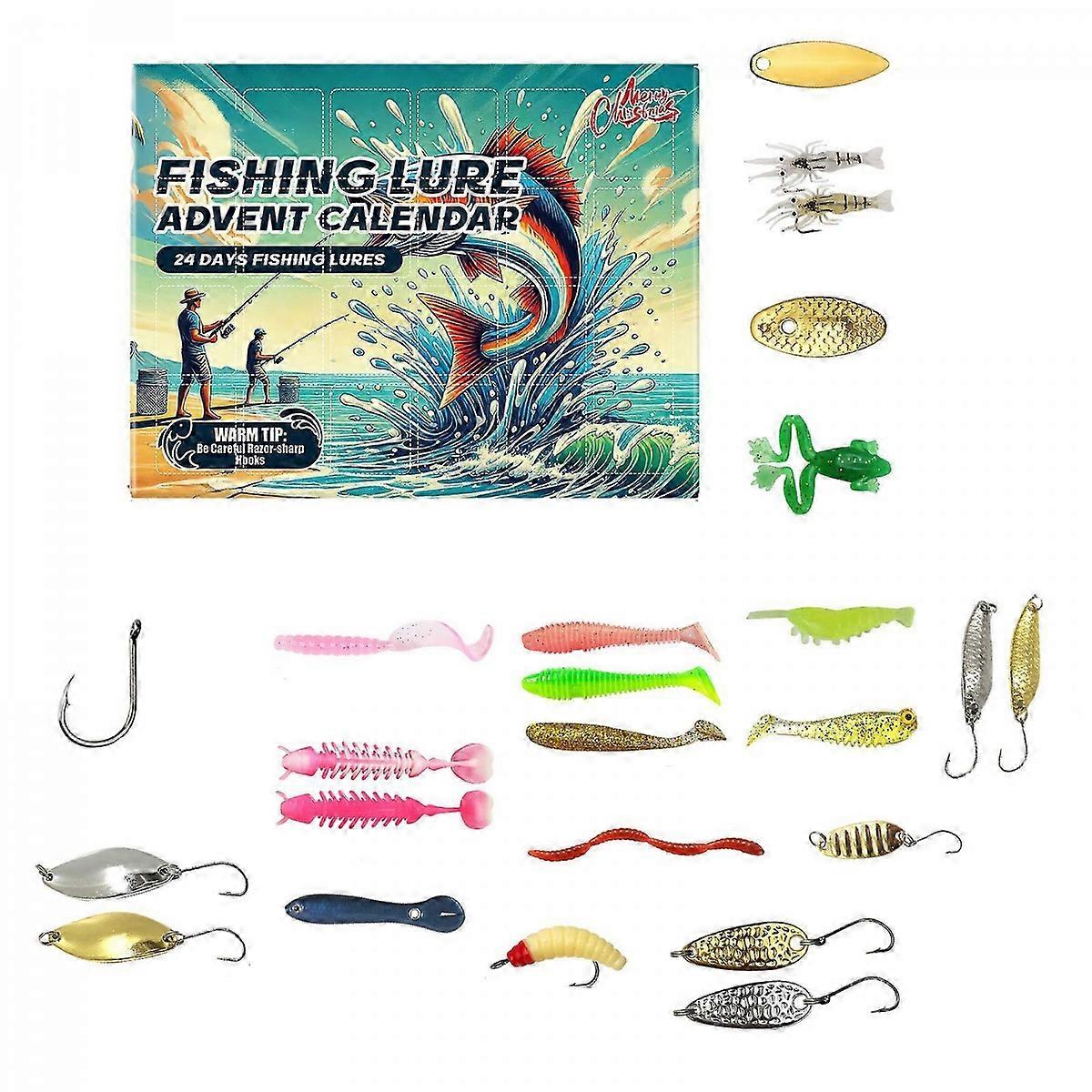 Christmas Fishing Lure Advents Calendar Seasonal 24 Days of Fishing Lures Advents Calendar Charm for Holiday Celebration