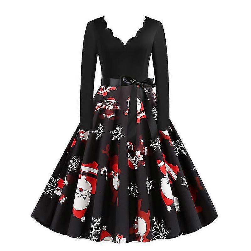 Christmas Women Hepburn Swing Dress Santa Claus Xmas Party
