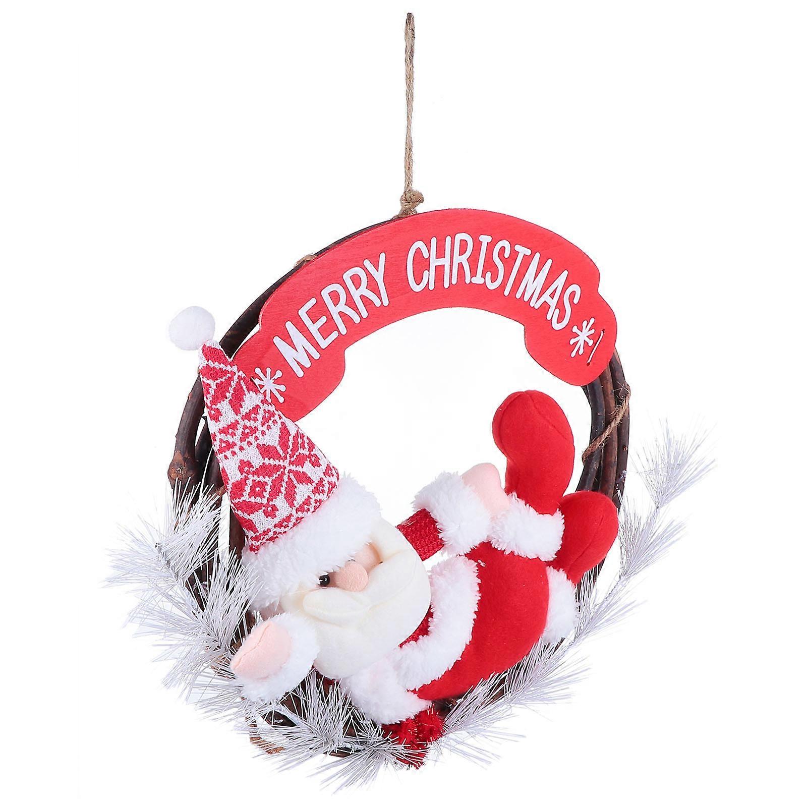 Christmas Wreath Hanging Doll Door Hanger Red White Xmas Pendant Holiday Decoration Front Door Wall Shop Window