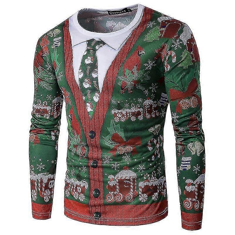 Christmas T-shirt Men Long Sleeve Xmas Print Tee Shirt Crew Neck Tops