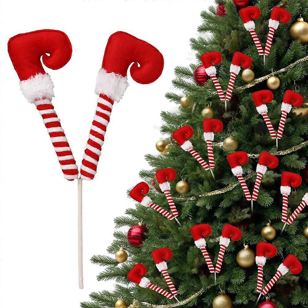 Christmas Elf Legs Picks Xmas Tree Topper Decoration Striped Elf Feet Ornaments