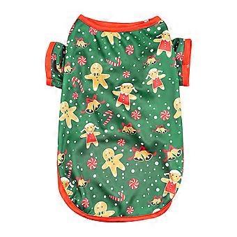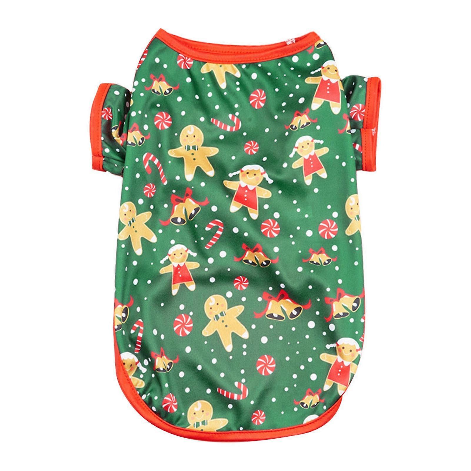 Dog Christmas Pullover Gingerbread Man Pattern Comfortable Polyester Pet Sweatshirt for Puppy Kitten Green L