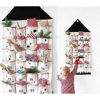 Christmas Advent Calendar with Pockets Wall Hanging Bag for Home Xmas Countdown Decoration (Black)
