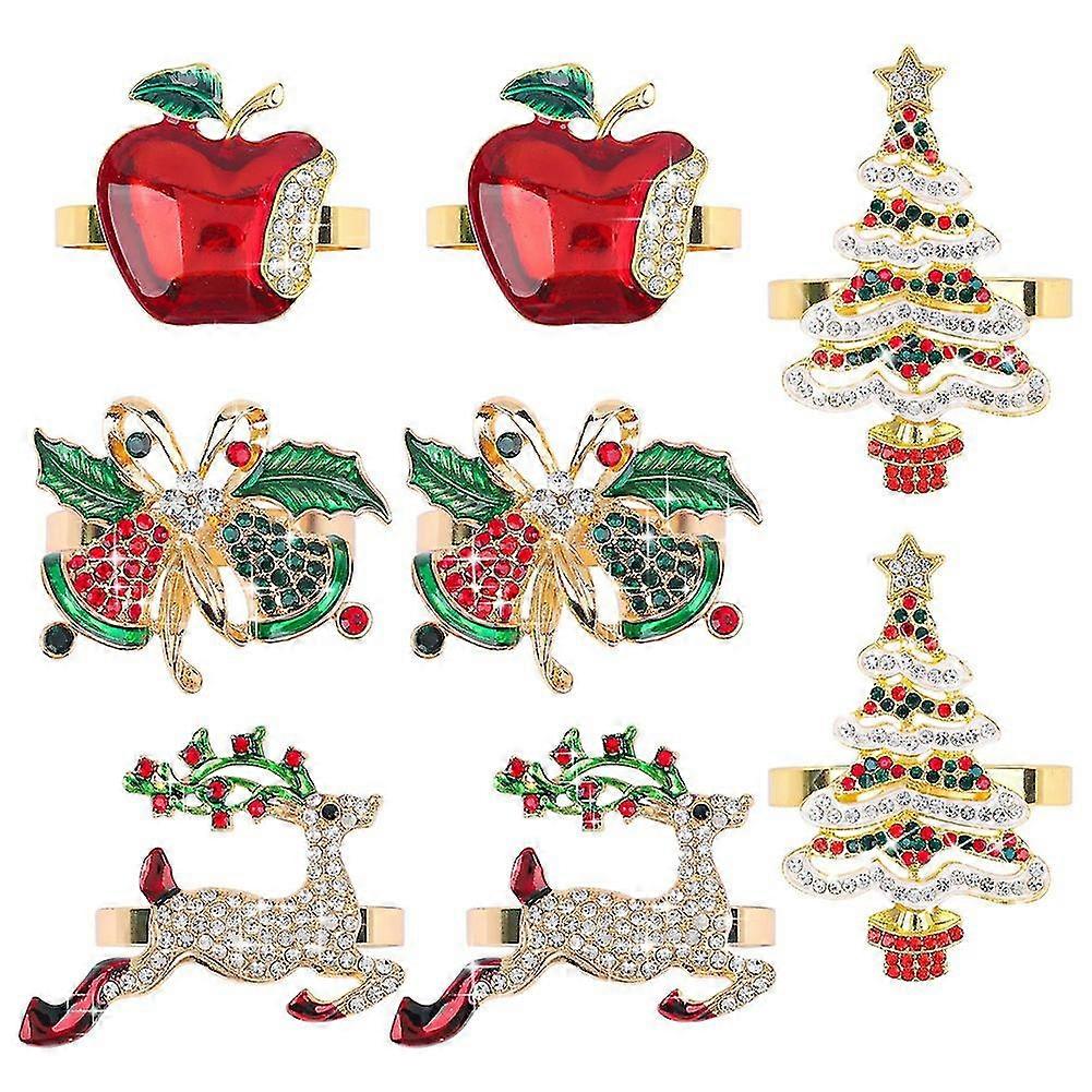 Christmas Napkin Ring Set Of 8 Metal Christmas Tree Deer Napkin Rings Holders Rhinestone Napkin Buc