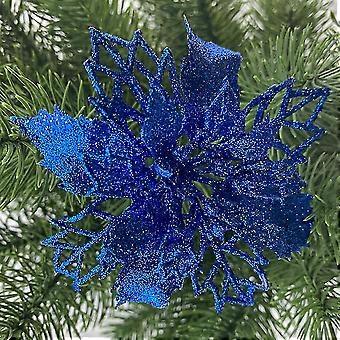 Christmas Poinsettia Glitter Flower Xmas Tree Hanging Decor Party Ornament-7