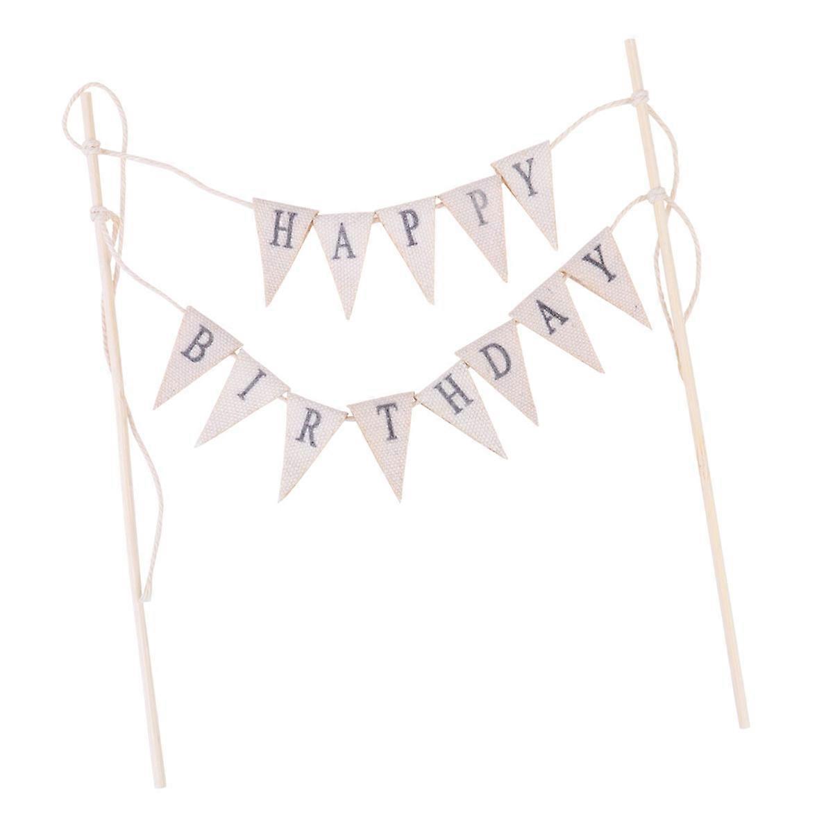 Happy Birthday Cake Bunting Decor Wooden Flag for Festivals and Holidays 1Set