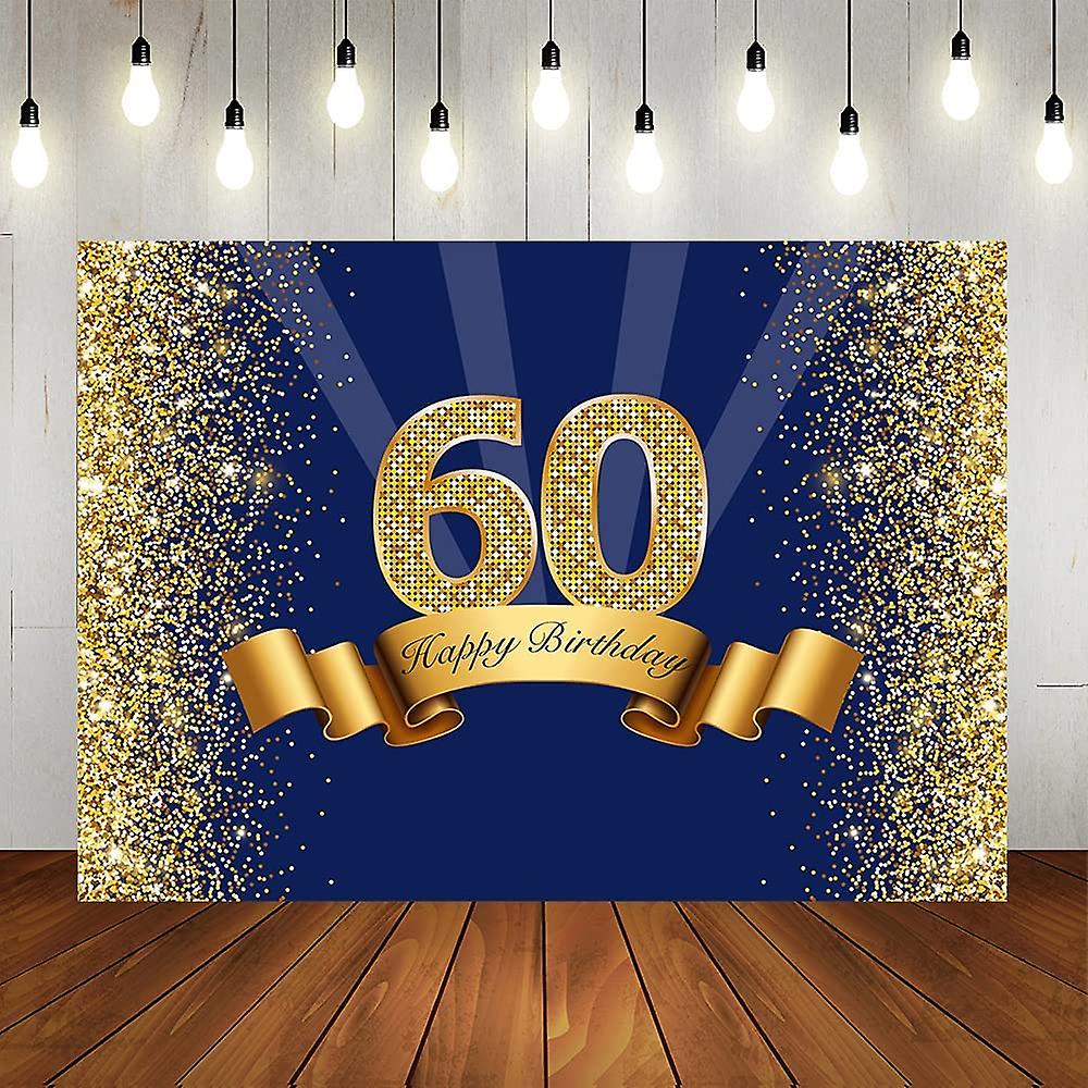 Happy 60th Birthday Photography Backdrop For Adult Men Navy Blue And Glitter Gold Sixty Years Old Background Shiny 60th Anniversary Party Decorations