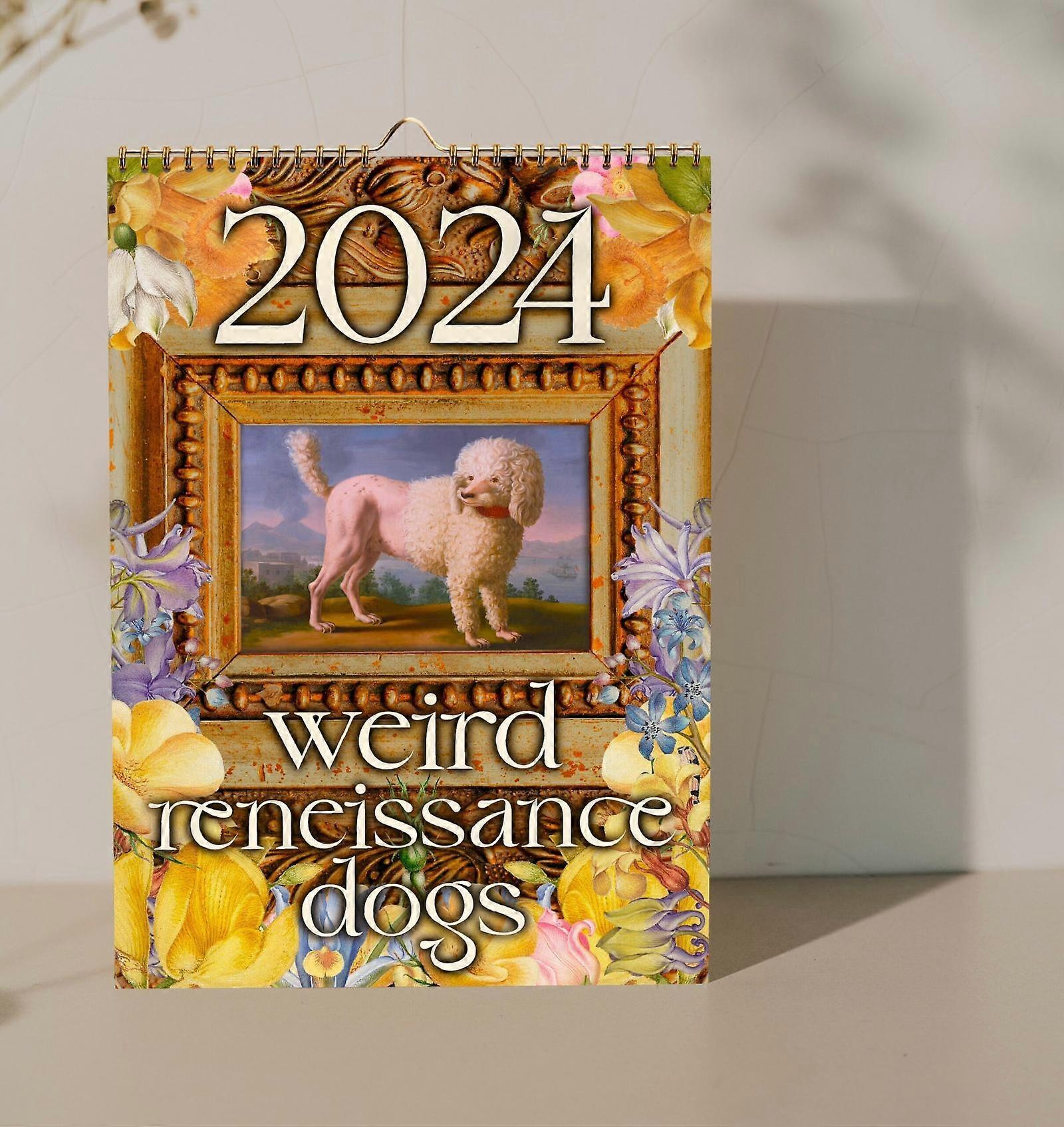 Weird Medieval Dogs 2024 Calendar Funny Modern Stylish Eclectic Aesthetic Wall Calendar Dog Lover Christmas Housewarming gift