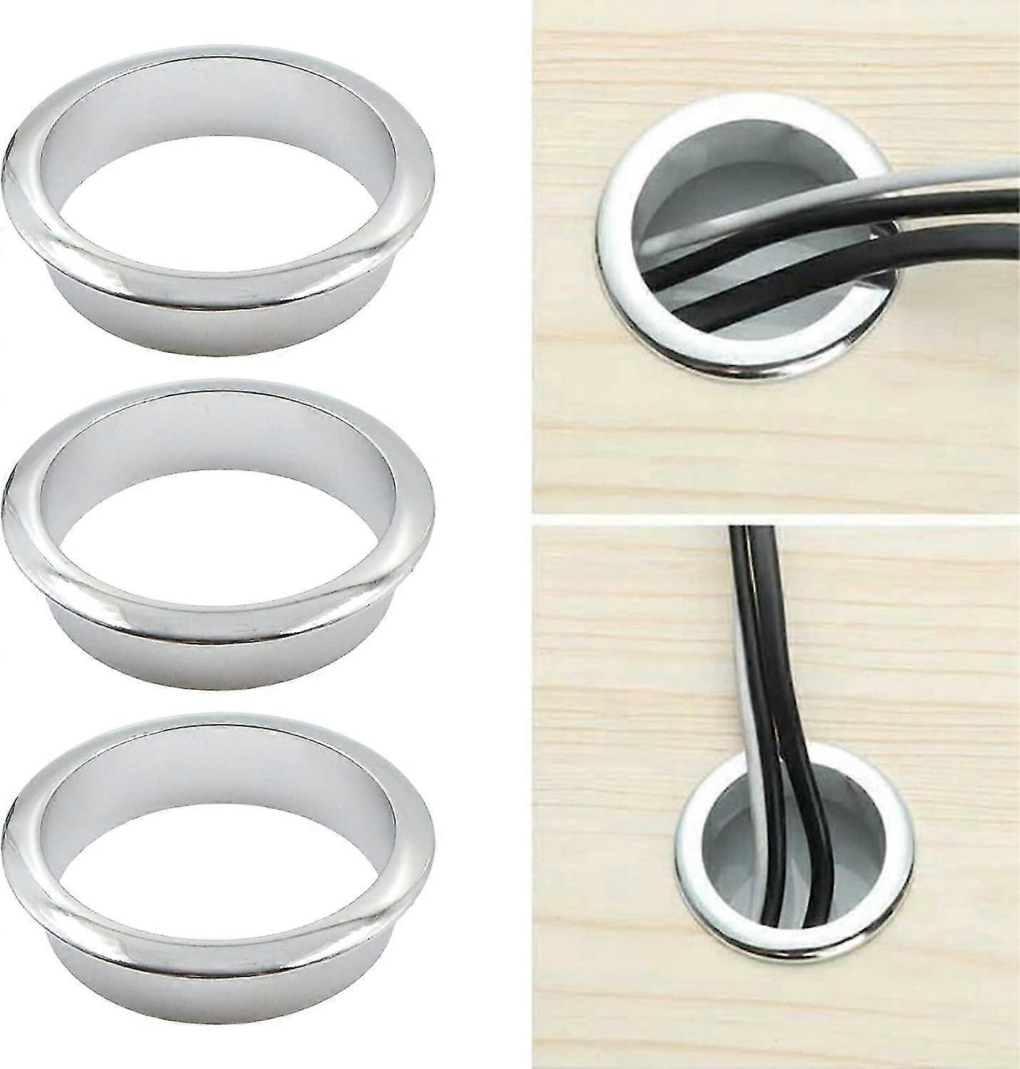 60mm Metal Desk Grommet Cover - Decorative Ring for Furniture Threading Box, Computer Desk Wire Management, 3 Pieces (One Size)