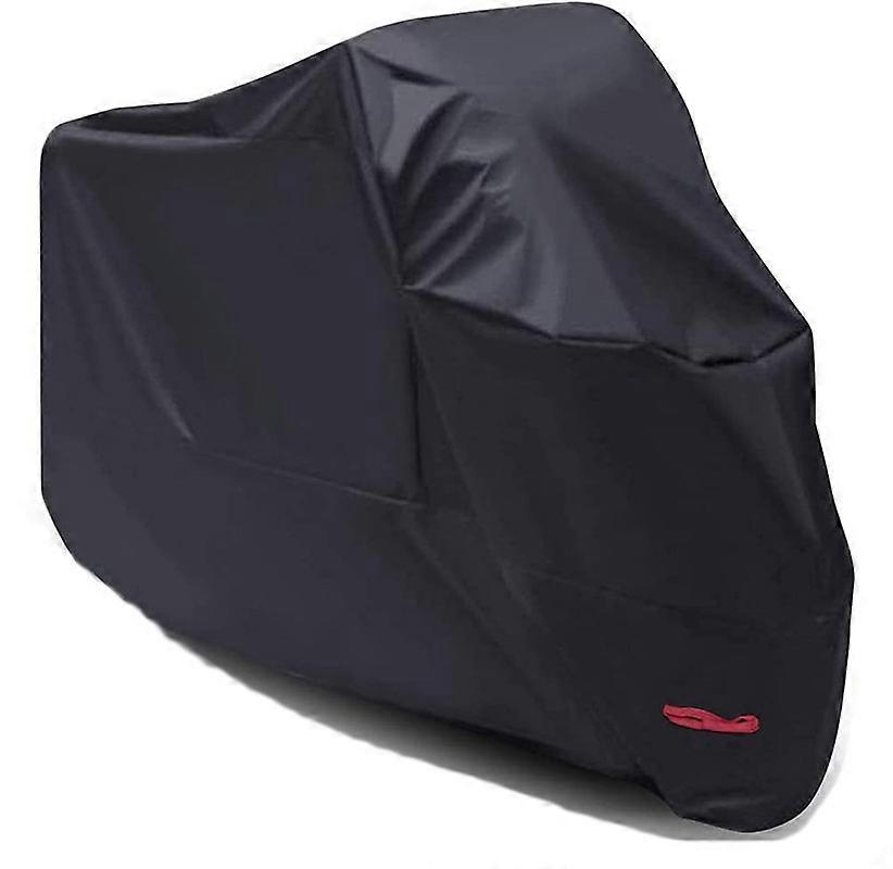 Durable Waterproof Material And Precise StitchingMade of high-quality 210D Oxford fabric material with waterproof PU coating, it can protect your motorcycle, scooter or large bicycle from rain, snow, sun, dust and debris Infringement of crumbs, encrypted double needle thread sewing, not easy to leak, very durable. Windproof Buckle DesignFeaturing elastic hems on the front and rear wheels area of this cover, and buckle on the middle. Adjustable abdominal buckle webbing enhanced wind resistance,Front and rear elastic band to enhance the cover's robustness,keeping the cover in place even under high winds. Improved Anti-theft Fabric HolesDesigned with the fabric holes rather than metal rings, you have no need to worry that metal rings came off or rusty . Universal Fitmotorcycle cover is universal and fits various motorcycleslike BMW, Honda, Yamaha, Suzuki, Harley, Kawasaki .