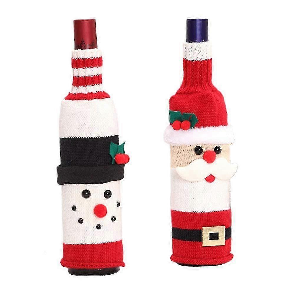 Christmas Wine Bottle Cover,Santa Claus Wine Bottle Toppers Handmade Wine Bottle Sweater Christmas Wine Bottle Decoration2pcs