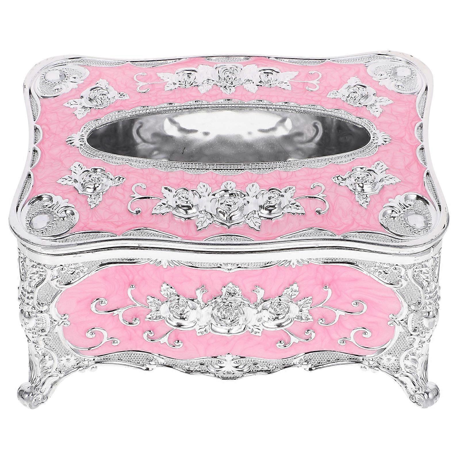 European Style Tissue Box Cover with Rose Carving Design for Home Use Multi Color Plastic