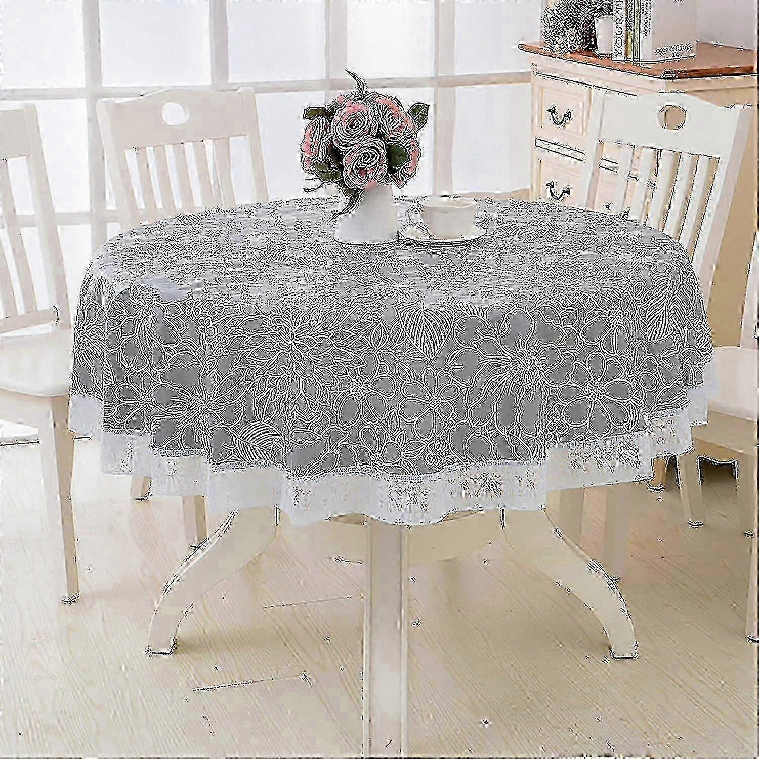 180cm Round PVC Oil-Resistant Table Cover, Floral Lace Design, Waterproof and Stain-Proof for Dining Decor