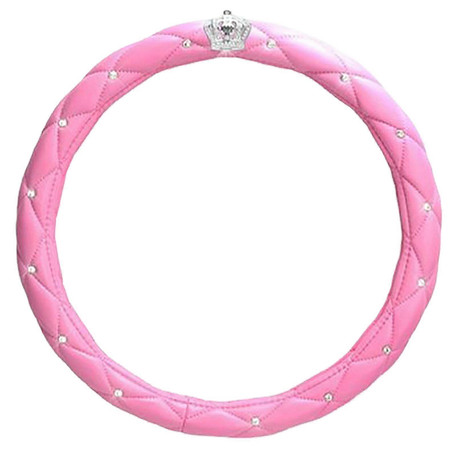 Women Steering Wheel Cover Cute Universal Antislip Pu Lether Rhinestones Car Steering Wheel Cover Pink