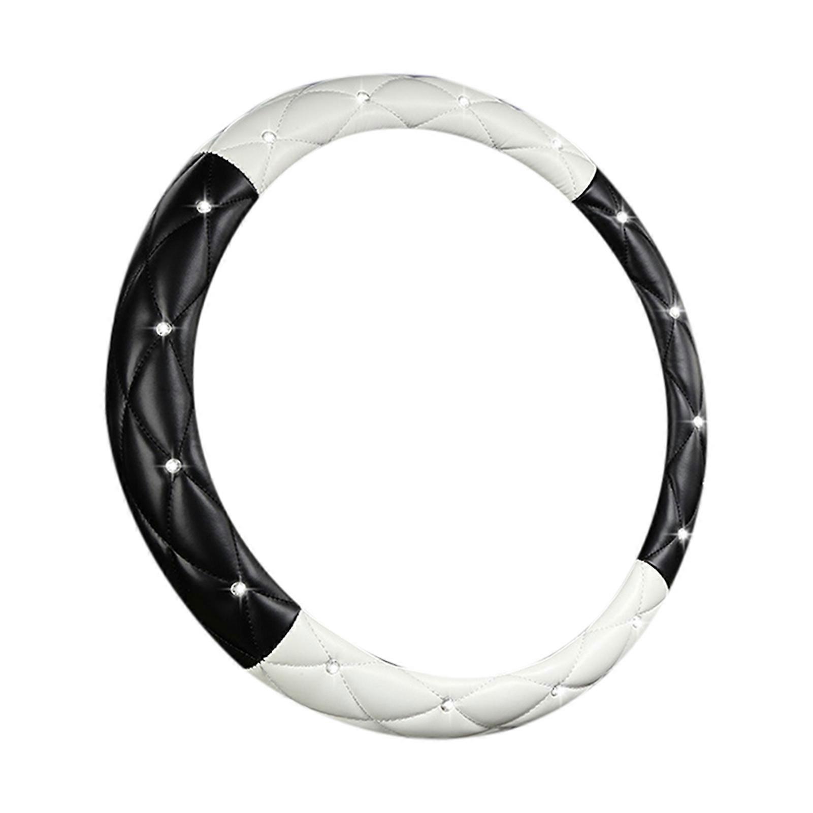 Steering Wheel Cover Non-slip Rhinestone Inlay Wear-resistant Rhombus Pattern Fine Stitching Perfect Decor Good Hand Feeling Auto Decoration Steering