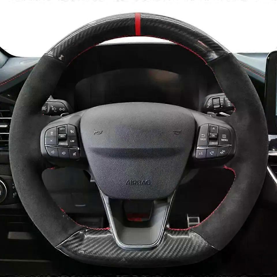 unique Car Steering Wheel Cover Non-Slip Black Suede For Ford Focus ST-Line Fiesta ST-Line 2018-2019 Focus ST 2019-2020 Fiesta ST 2019