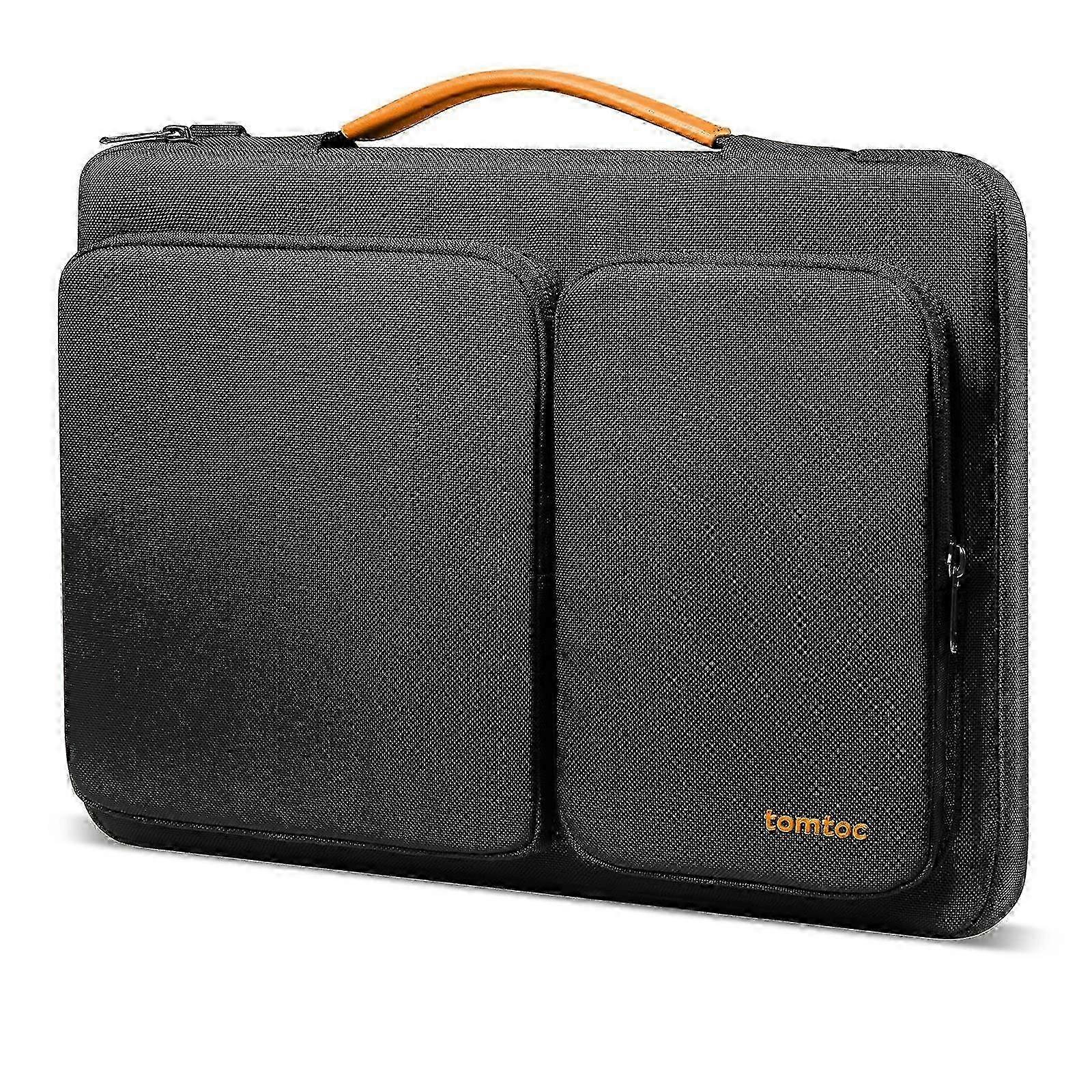 1.All-round Military-grade Protection: The Laptop briefcase features CornerArmor technology with 4 corner protectors, high resilient edges, high-density padding, and Water-resistant fabric combined to protect your device from the inevitable bumps, dents, scratches, and water spills. The computer handbag has passed the military standard drop test in 2020 (MIL-STD-810H: 2019) 2.Smart Tri-compartment Storage System: The laptop carrying case has two separate compartments with several small pockets and a strap for Airtag or key. It can keep your electronic accessories, such as charger, cable, USB hub, Kindle, etc., stay organized. In addition, a hidden pocket on the back allows you to store your personal belongings for easy access while remaining secure 3.Quality Meets Performance: Top-quality YKK zippers, all reinforced stress points, and padded and fleece sophisticated interline design meet or exceed your expectations for laptop bag quality. PU leather handles and lightweight design provide you with maximum comfort 4.Multifunctional and User-friendly Design: The minimalist squared-off appearance of the laptop handbag is formal, classic, and stylish. The side openings prevent accidental slippage. The slim design and retractable carrying handle make it easy to carry as a briefcase or tuck into your backpack or suitcase, perfect for business, school, or travel Note: Due to the light and screen setting difference, the item's color may be slightly different from the pictures. Please allow slight dimension difference due to different manual measurement. Sold by-YJL official store