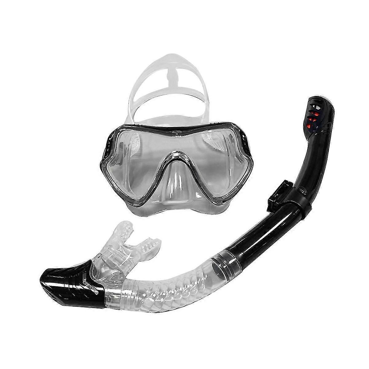 Features: Clear View Underwater: The professional diving mask provides a 180 panoramic view underwater, making it easier to when snorkeling, and helping you to understand the underwater world more clearlyComfort fit silicone part for leak-proof fit. Adjustable head straps fix on head firmly. Made of silica gel for durability, snorkeling mask is safe, non-toxic and odourless. The inside is soft silicone, which can protect your safety and will not give you headaches when worn for a long time. The elastic headband can be worn easily, suitable for a of head types. Release your hands to make you more free in the water eliminates water entry when submerged. The snorkel has flexible water stop system, stop water completely.The ball on the top of the tube will automatically seal the air valve to prevent salt water from entering your mouth, and increase snorkeling timeMaintenance: Clean mask with water after use every time.Put the mask in warm water for some minutesAfter sea snorkel to avoid corrosion.Avoid to use soap or detergents to make visibility well.Keep dry after use.'t place the mask under the sunlight directly.'t use towel to clean the face lens, glasses cloth Is better.'t place face lens touch the hard surface.Specifications: Mask headband: Food grade liquid siliconeLens: Tempered glassMouthpiece, hose: Food grade liquid siliconeTube: PVCMaterial: silica gelcolour: Black+transparentPackage Contents: 1 x diving mask1 x snorkelOnly the above package content, other products are not included.Note: Light reflection and different displays may cause the color of the item in the picture a little different from the real thing. The measurement allowed error is +/- 1-3cm.