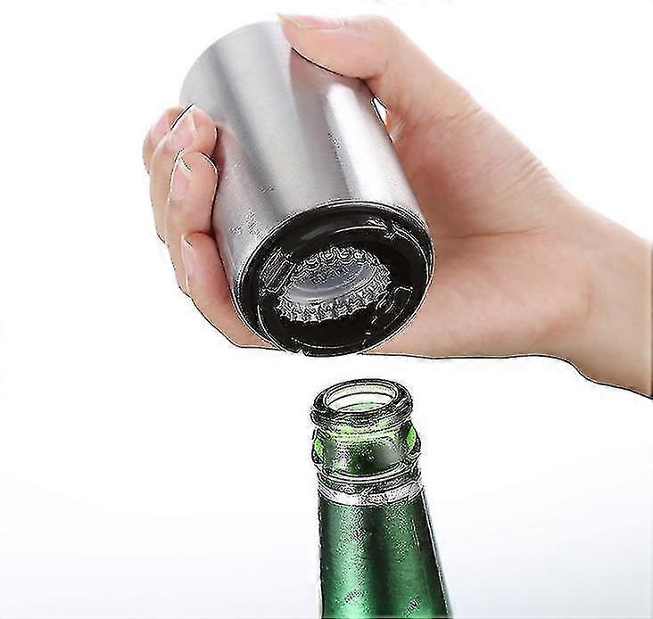 EASY TO USE : The bottle cap opener Opening a beer or soda has never been easier. Just place opener on bottle, push it down, and pop it off. All done in one quick effortless motion.^DUAL FUNCTIONALITY : This automatic bottle opener is a good gift for your dad.Opens bottles instantly and great beer bottle cap catcher with magnet. Will not bend caps once off which makes it great for Cap Collectors.^SPEED OPENER : The speediest bottle opener than any other bottle openers out there. No more twisting caps and getting hurt.^PROFESSIONAL GRADE AND DURABLE: High quality,Dont hurt hands, youll like this feel. Open 100 bottles in one go.GO GO GO^BEST CHOICE: Elegant design,looks good on any bar or counter, a cute gift for bartender. High-end quality, easy to use, simple and generous.It suits your extraordinary temperament.