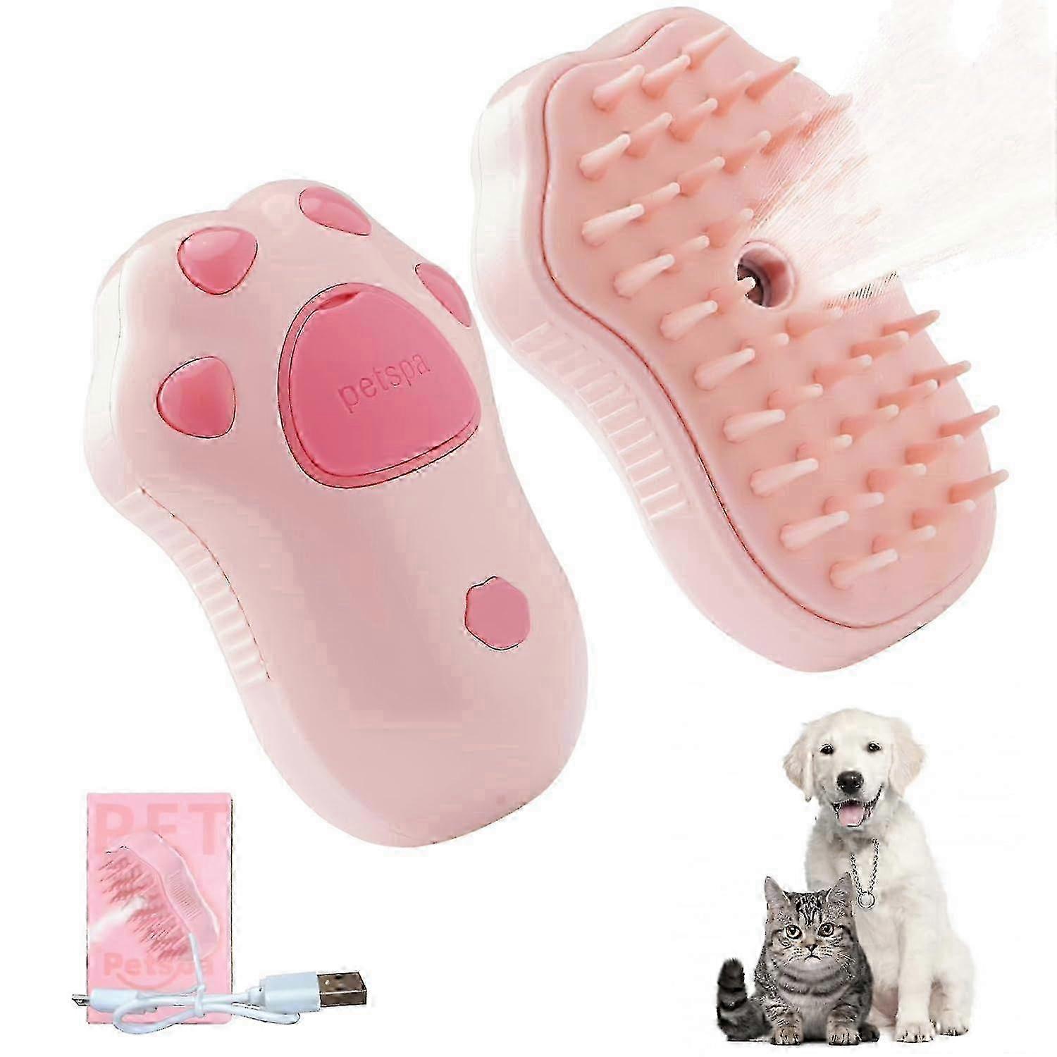 Cat Steam Brush, 3 In 1 Cat Steamy Brush, New Upgrades Silicone Self-Cleaning Spray Cat Brush For Shedding