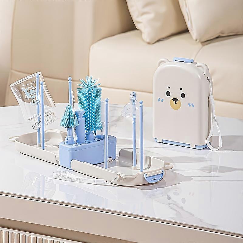 Portable Silicone Bottle Brush, Special for Cleaning, Storage Box for Drain Rod, Travel Set, Blue