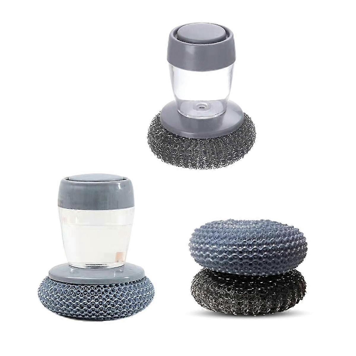 Soap Dispenser Brush For Kitchen Sink Pot Oven Dish Scrubber With Holder Push-type Liquid Adding Pet Wire Ball Pot Brush