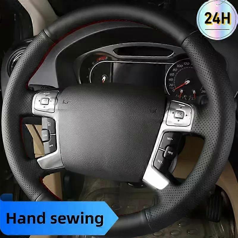unique Black Hand-stitched Genuine Leather Car Steering Wheel Cover For Ford Mondeo Galaxy S-Max 2006 - 2015