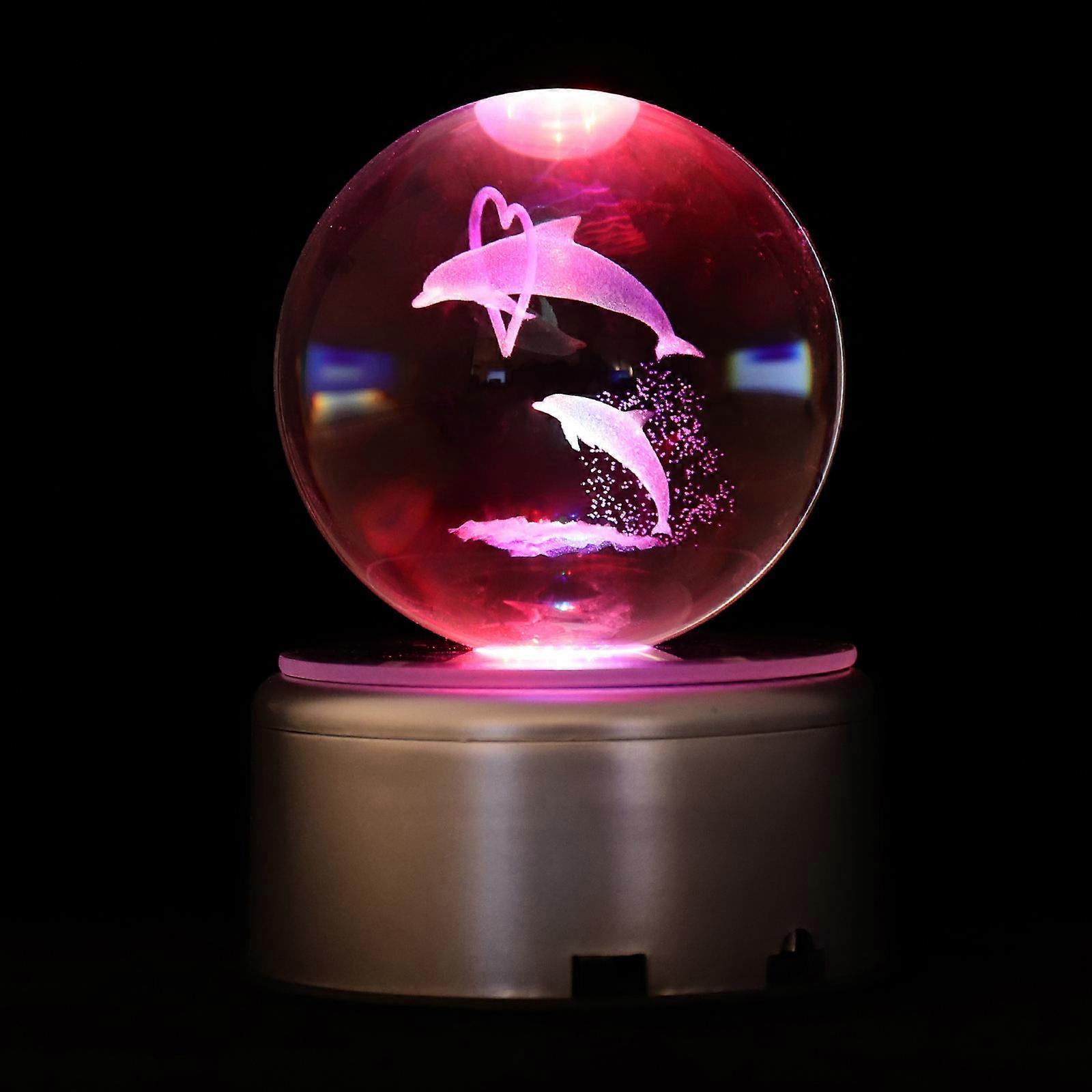 Unique Round Dolphin Crystal Ball Adornment For Attractive Home Decoration Designed For Kids And Families In 80mm Size With Luminous Feature 1Pcs