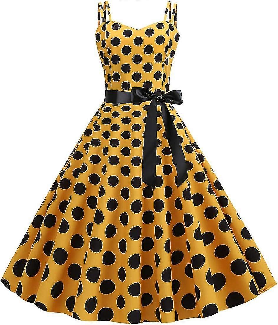 Women's 50s 60s Vintage Sleeveless Strap Polka Dot A-line Swing Cocktail Party Tea Dresses