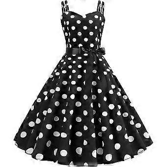 Women's 50s 60s Vintage Sleeveless Strap Polka Dot A-line Swing Cocktail Party Tea Dresses