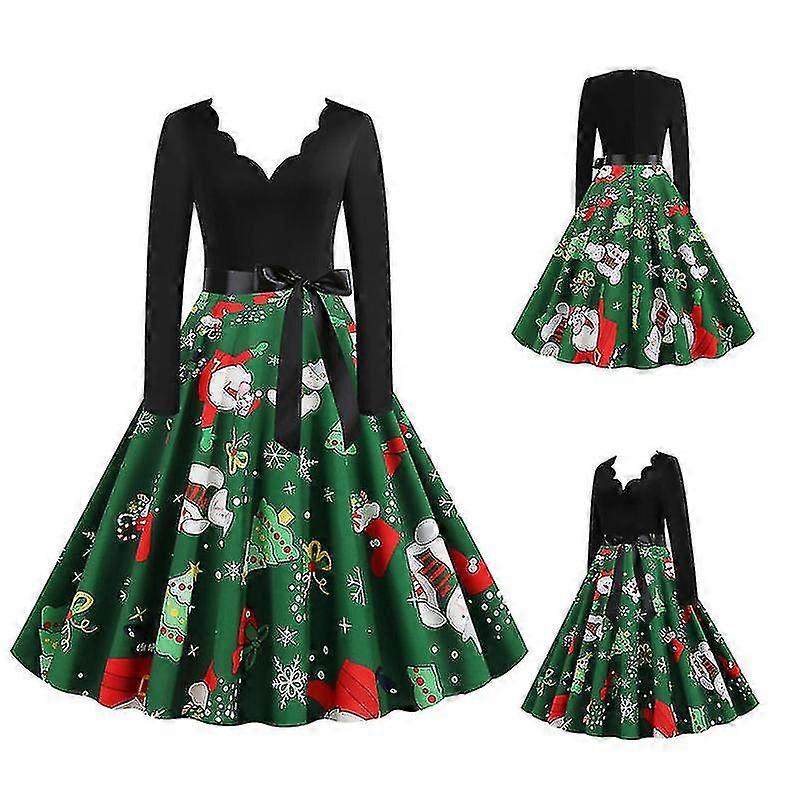 Christmas Dresses Women Print Long Sleeve Maxi Ball Gown Large Swing Elegant Party Dress