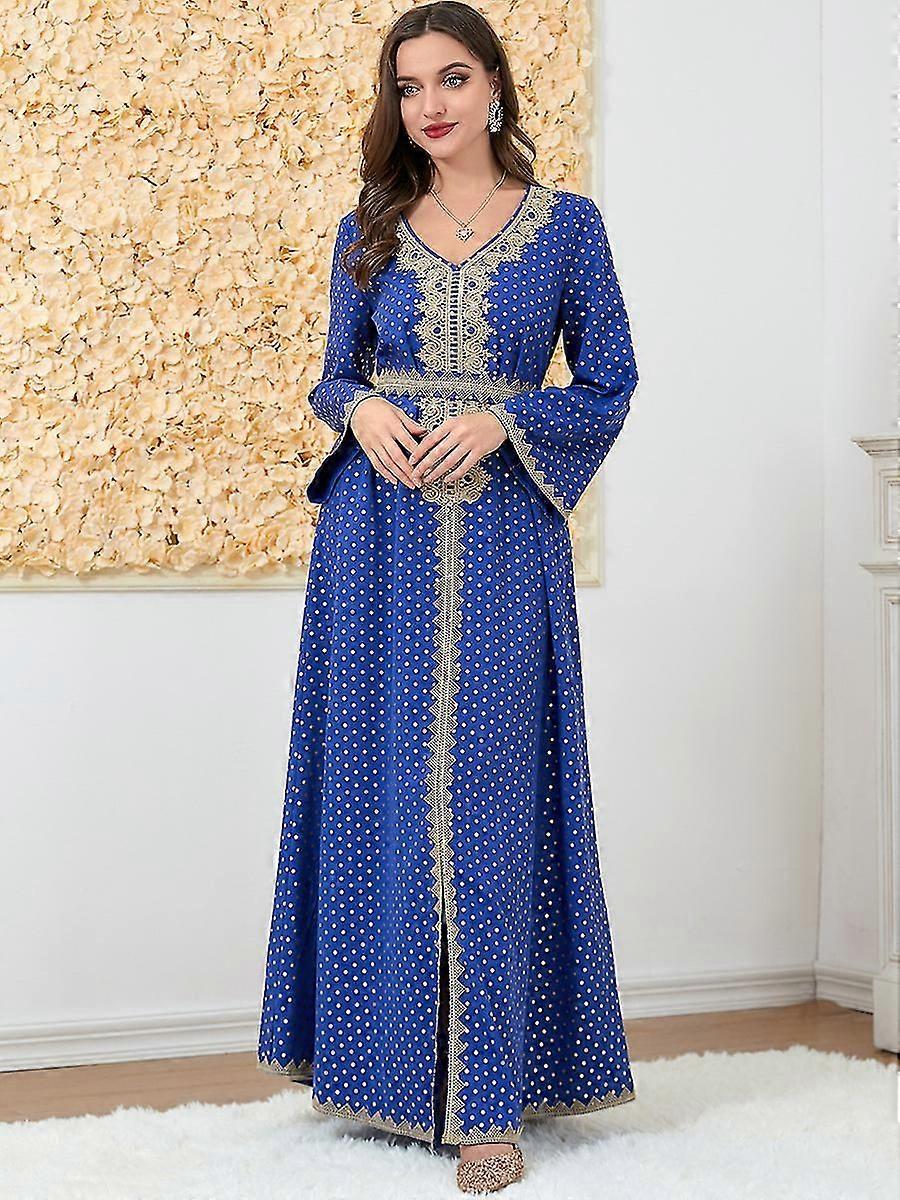 Muslim Dresses For Women 2022 Tape Trim V-neck Polka Dot Party Dress Turkey Abaya Dubai Arabic Oman Morocco Caftan Islam Clothes