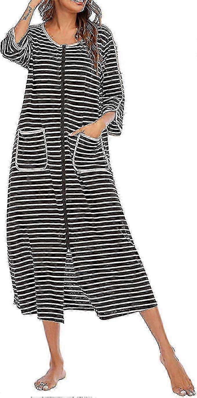 Women's Dressing Gowns with Zipper - Soft Robe Sleepwear with Pockets