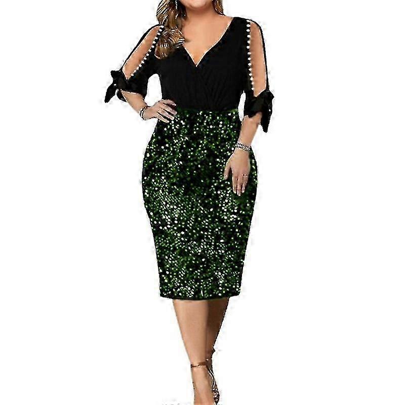Plus Size Sequin Bodycon Dress with V-Neck, Mini Length, Short Sleeves - Glitter Cocktail Event Dress for Women
