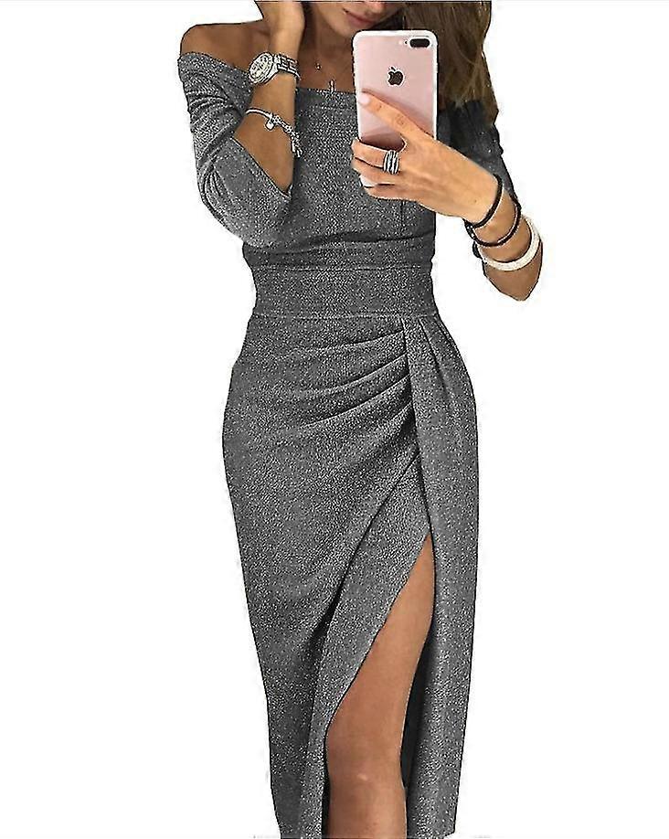 Women's Wrap Hip Slit One-neck Dress Sparkling Gown Dress Evening Dress
