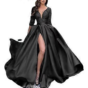فستان نسائي من الدانتيل والترتر بتصميم كامل مثير وتنورة طويلة وذيل لحفلات السهرة