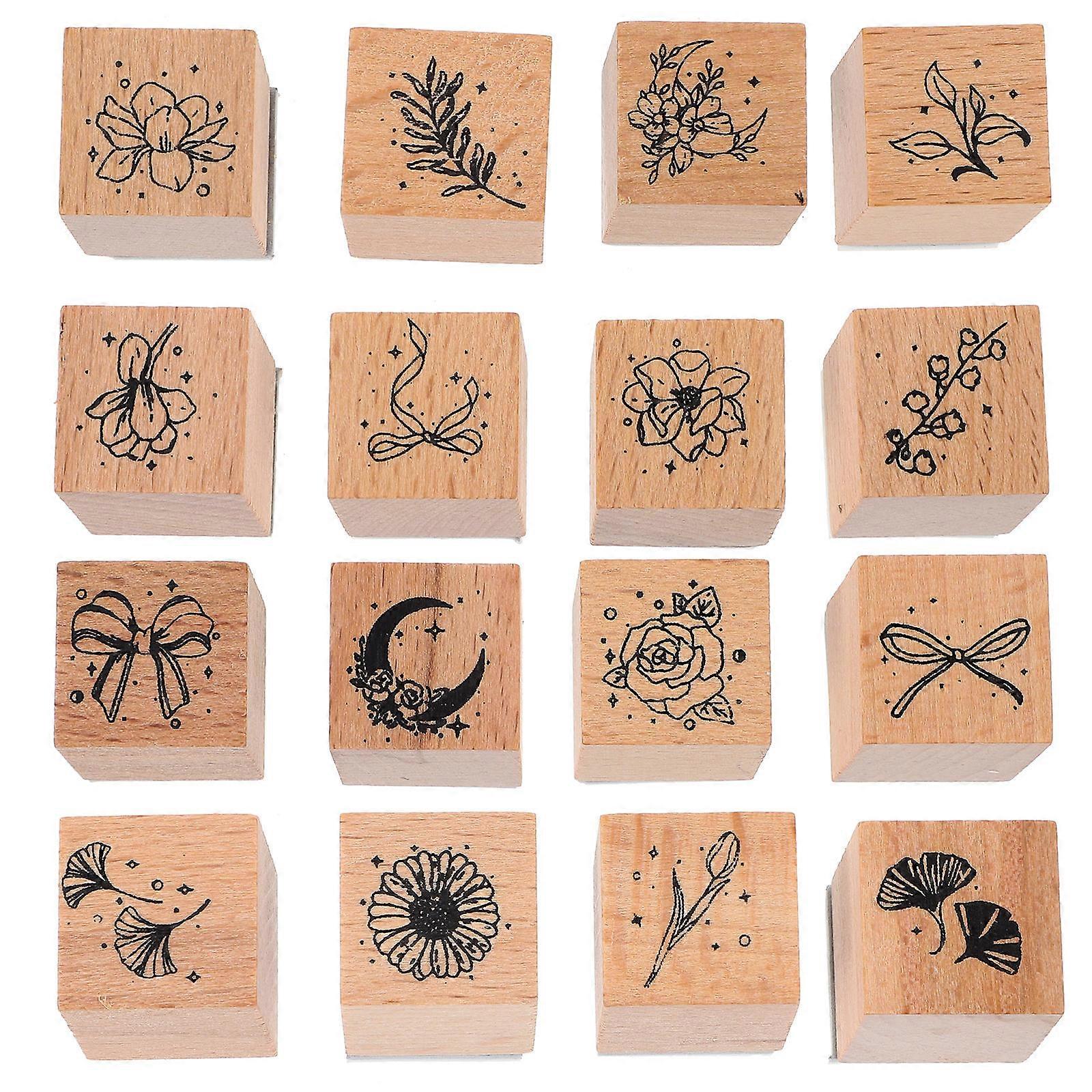 Flora Wood Stamp Diary Stamps Letter Decoration Children Retro Style 16Pcs