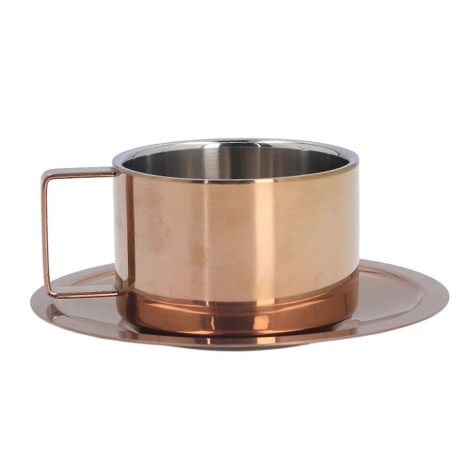 Coffee Cup Simple Ingenious 304 Stainless Steel Coffee Cup Set with Coffee Plate for Home Outdoor Rose Gold