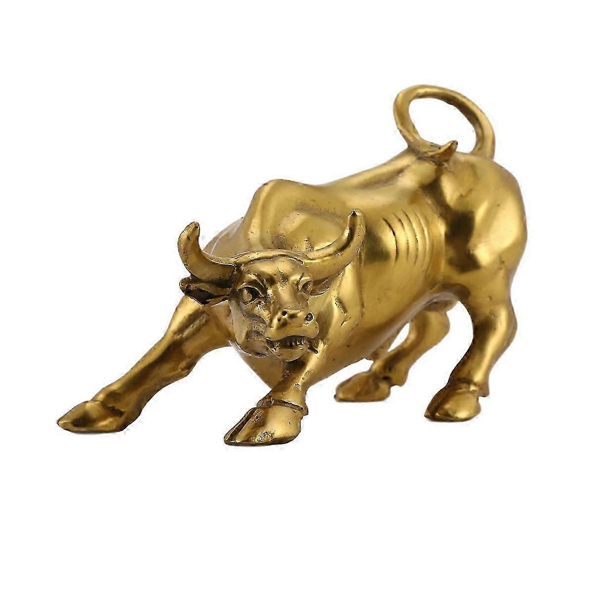 Feng Shui Fortune Brass Bull Statue, Sculpture Home Decoration Golden Copper Bull Represents Good Lu