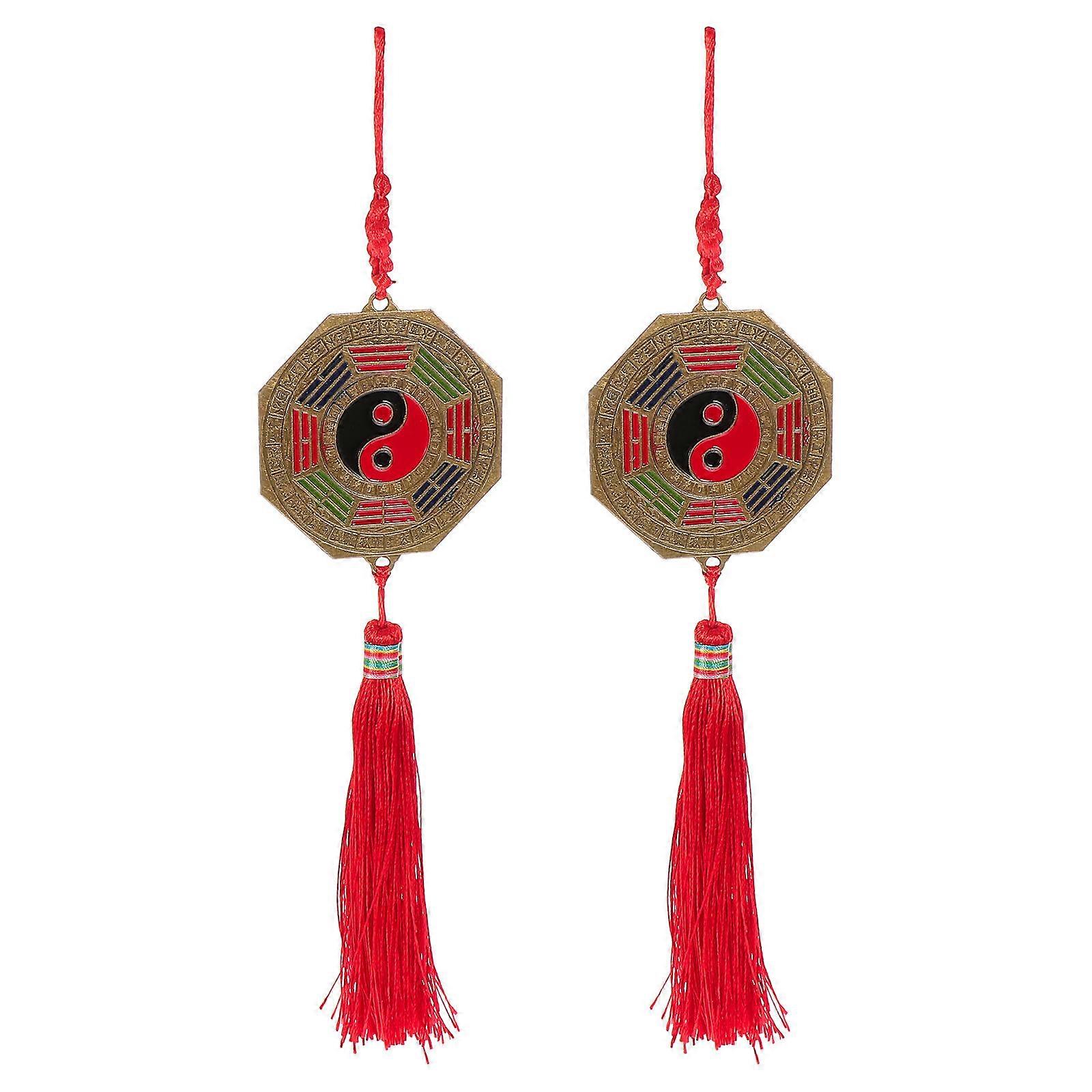 Feng Shui Mirror Pendant Alloy Bagua Decor Home Wall Art Taoism Symbol Luck Protection Square Ornament Living Room Blessing Prosperity
